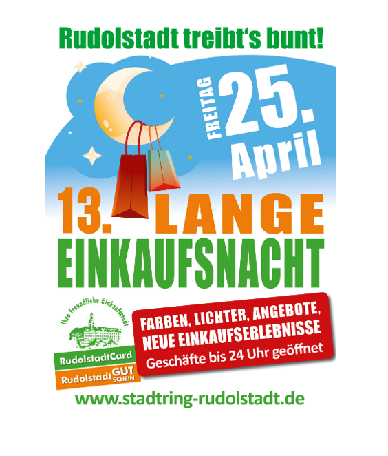 Unter dem Motto „Rudolstadt treibt`s bunt!“ locken zahlreiche Geschäfte zur Shoppingnight in die Rudolstädter Altstadt